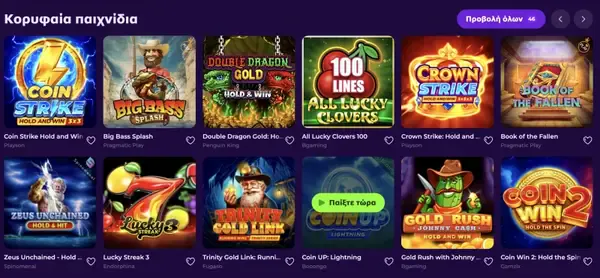 - Instant wins: crash-style παιχνίδια και γρήγορες φόρμες όπως τίτλοι τύπου Plinko.